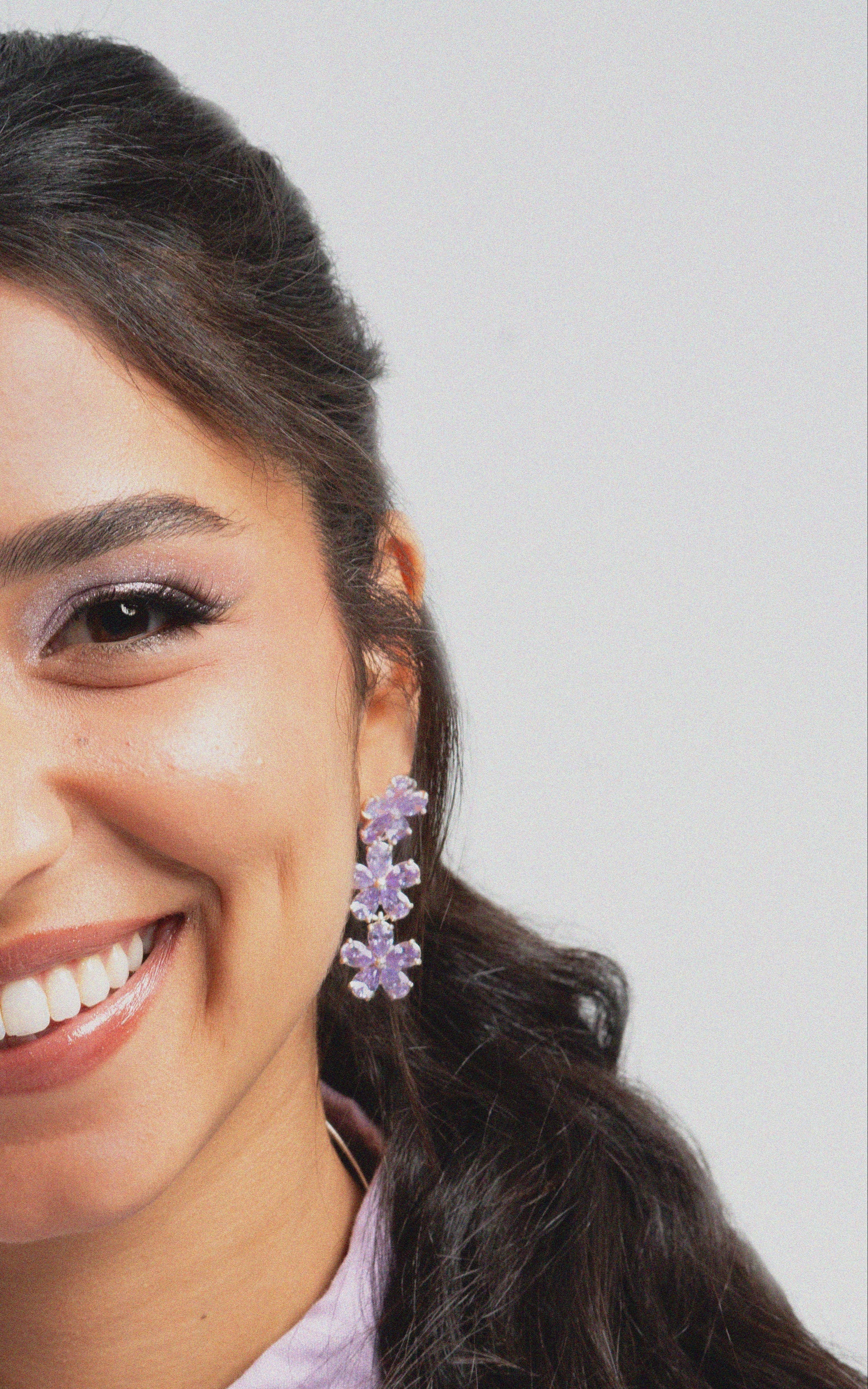 Our Blume Trio earrings feature three layered flowers, each petal is made a 925 sterling silver exterior and handset with select gemstones. This piece brings just the right amount of fun without feeling overdone. A summer favorite.